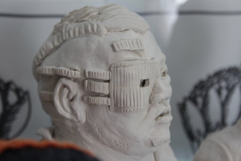 Wir modelieren die Köpfe zunächst aus Ton und erstellen dann einen Scan. Dieser Scan wirrd dann mit Blender weiter Modeliert.